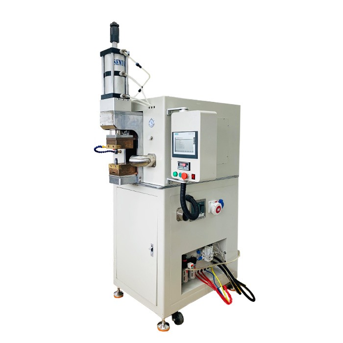 銅端子(銅管)變形量可以通過 PLC 設(shè)定并保存,并和電流設(shè)定的規(guī)范對應(yīng)起來。在焊接時當(dāng)銅端子(銅管)變形量達(dá)到所設(shè)定的值,焊接電源會停止放電,并保持 1-3S,氣缸抬起,得到更趨于一致的焊接。 變形量只需通過 PLC 來設(shè)定,不需通過氣缸行程限制。
